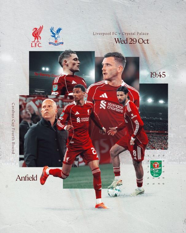 雷速体育10月29日讯 北京时间10月30日晚凌晨3:45,英联杯第4轮,利物浦将主场对阵水晶宫。